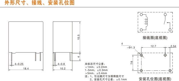 觸點形式繼電器常開或常閉(常見4、6只腳)、轉換(常見5只腳或8只腳)