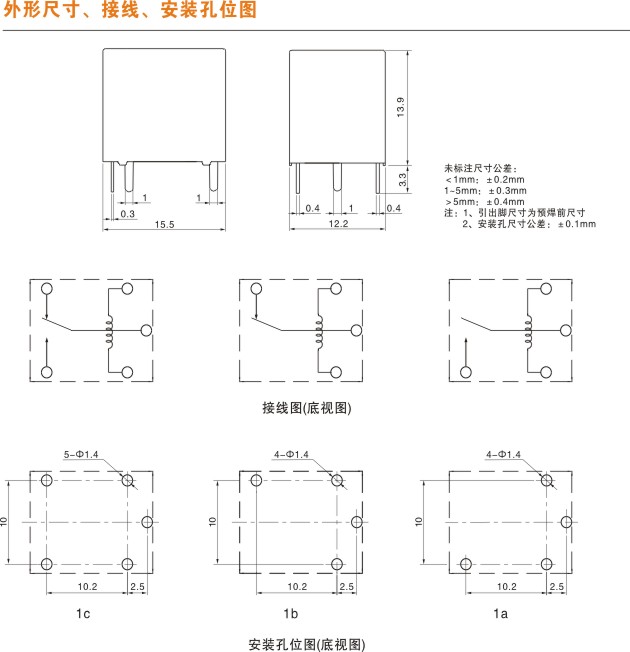 觸點形式繼電器常開或常閉(常見4、6只腳)、轉換(常見5只腳或8只腳)