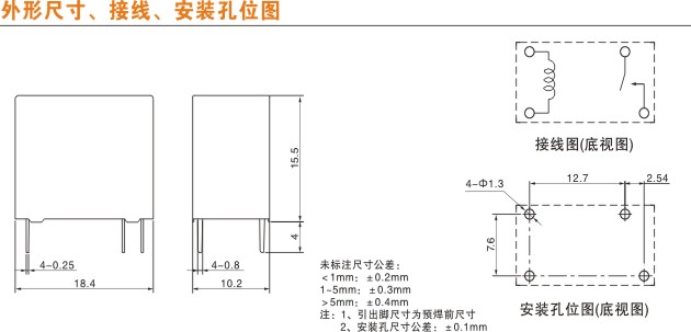 尺寸要求繼電器的體積:長、寬、高